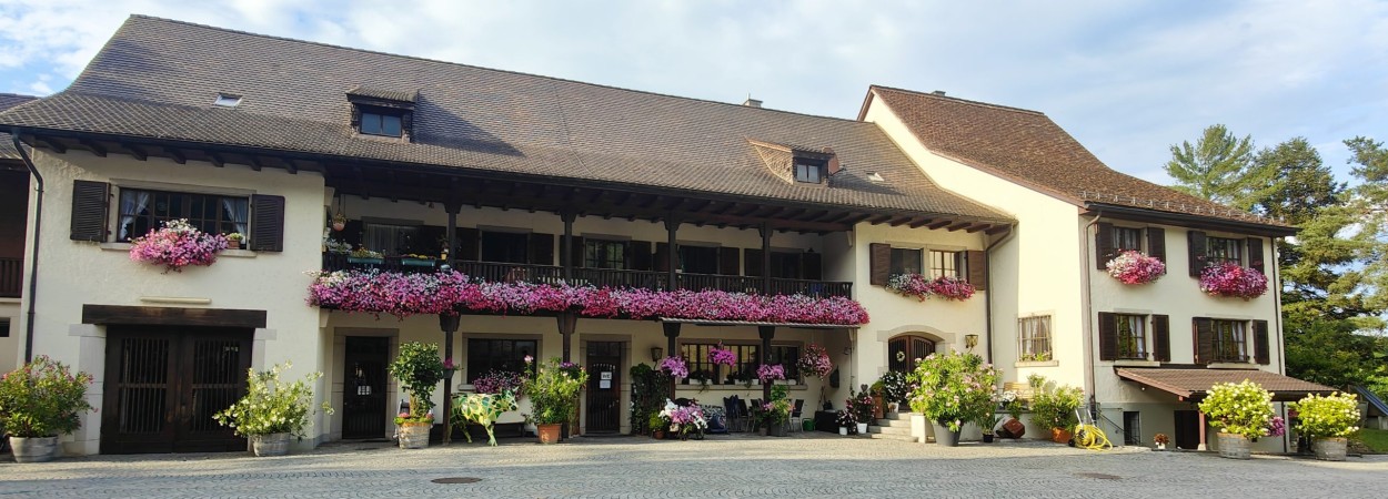 Mitten in der Natur, idyllisch gelegen, umrahmt von Reben, Wald und Wiesen liegt der Landwirtschafts- und Weinbaubetrieb Klushof in Aesch BL.